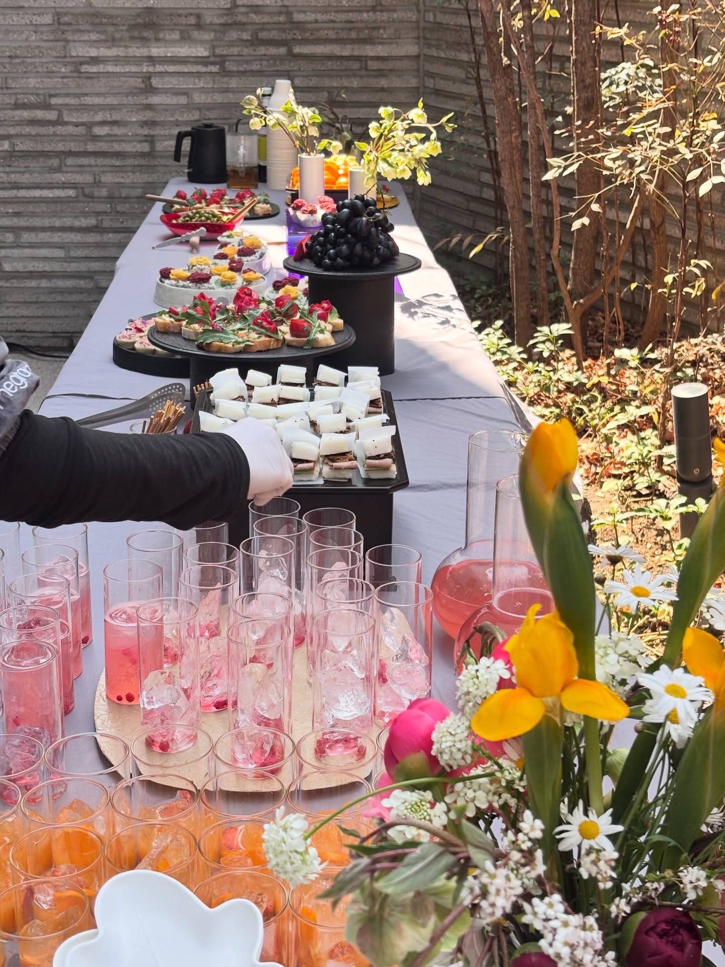 [2026.4.2 알부스 갤러리, <백지혜: 꽃의 안부> 전시 오프닝 케이터링] 갤러리 앞산에 개나리와 벚꽃이 송이송이 달려 막 날리기 시작할 즈음입니다. 이런 계절에 딱 맞는 <백지혜: 꽃의 안부> 전시 오프닝을 위해 상을 차렸습니다. 꽃의 형태나 꽃과 열매를 이용한 메뉴로 손님을 맞이했습니다. 좋은 봄 빛과 꽃이 만개한 아름다운 작품 그리고 따뜻한 손님들의 호응이 차린 상을 빛나게 해주었습니다. 의뢰: 알부스 갤러리 @albusgallery준비와 진행 도움: 홈그라운드 김세은 박소연 이다은 정재연