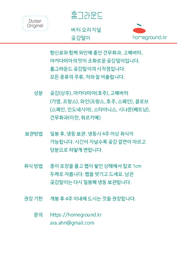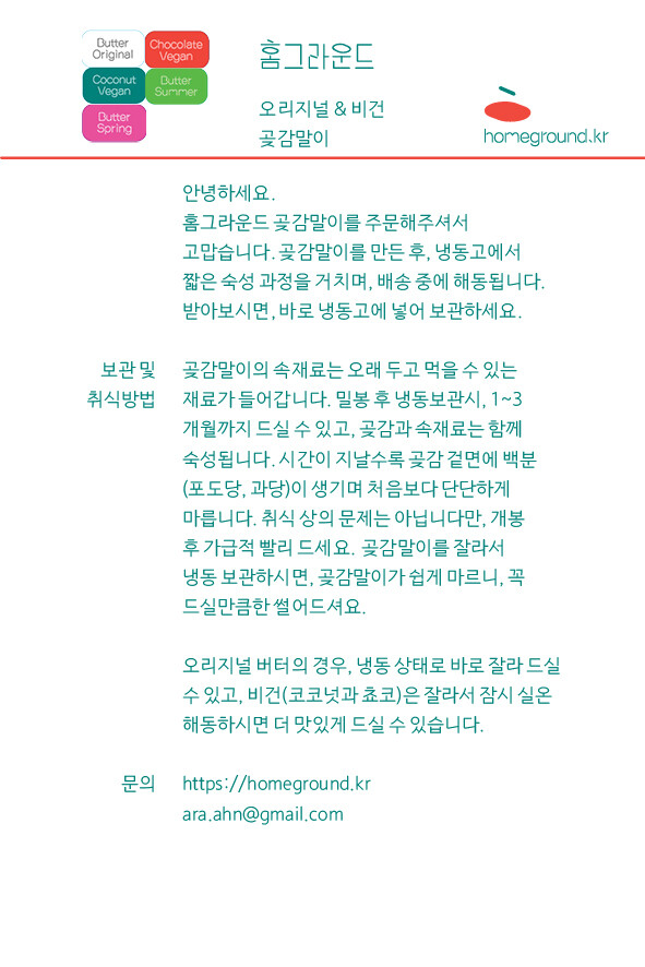 택배 배송을 원하시는 분은 관련 상품의 "홈그라운드 곶감말이(발송 상품)" 상품창에서 주문해주셔요.