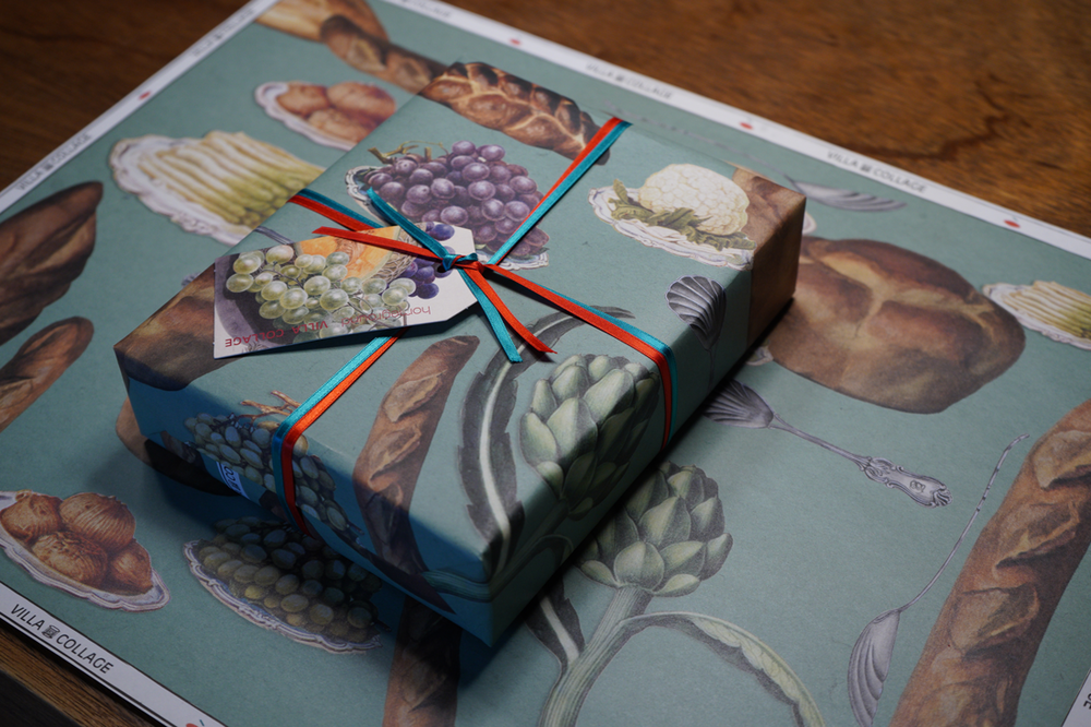 🏠 빌라꼴라쥬와 함께 디자인한 곶감말이 선물세트 포장지와 새로운 제품 태그가 나왔습니다.