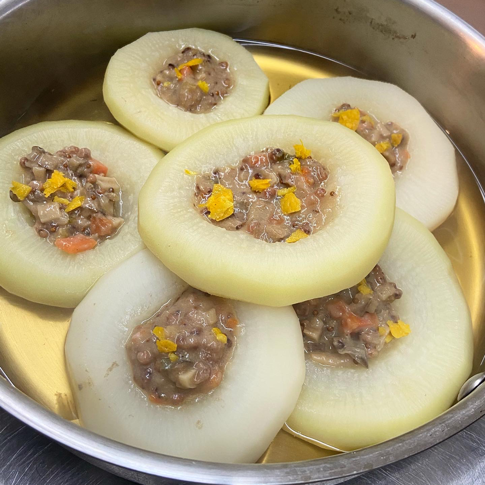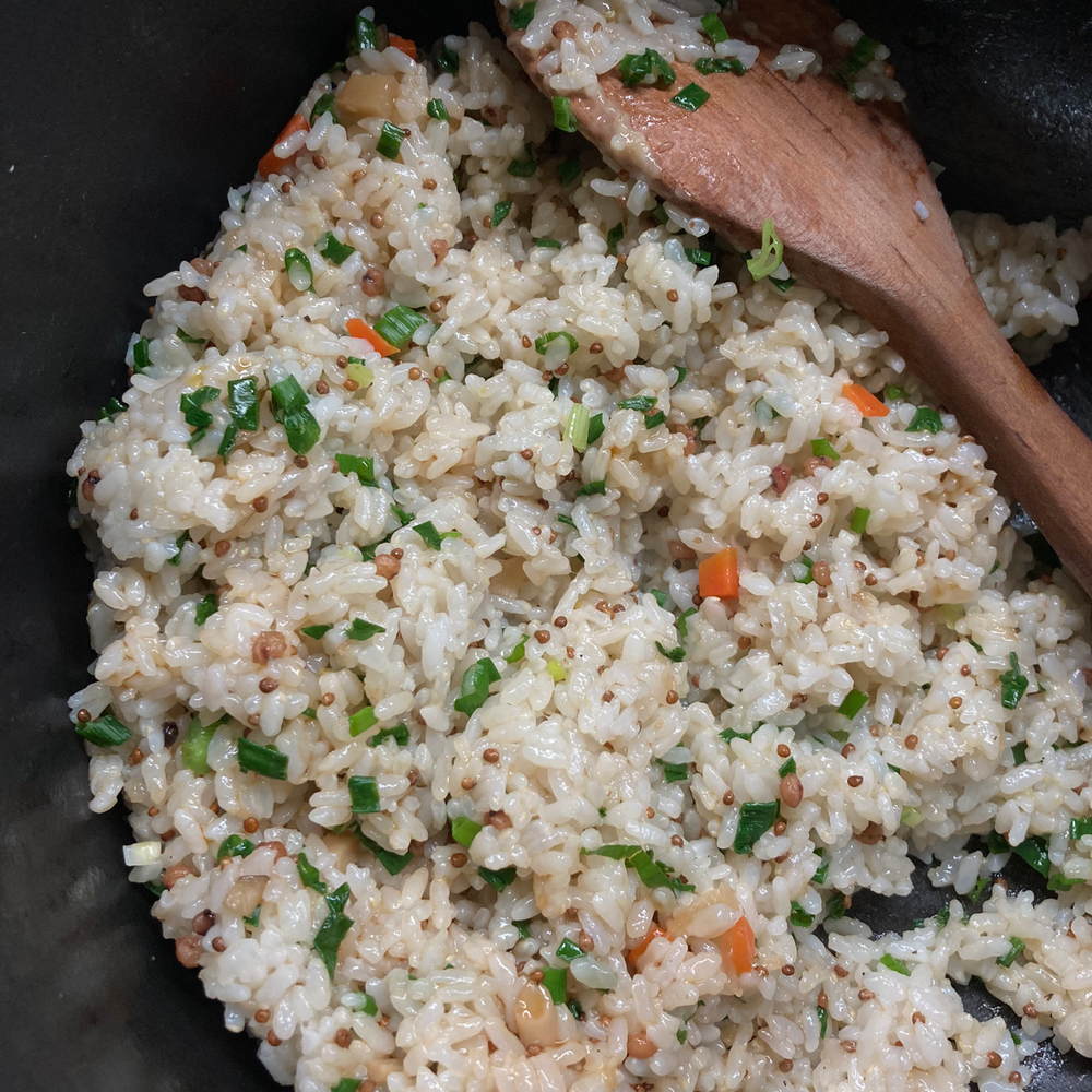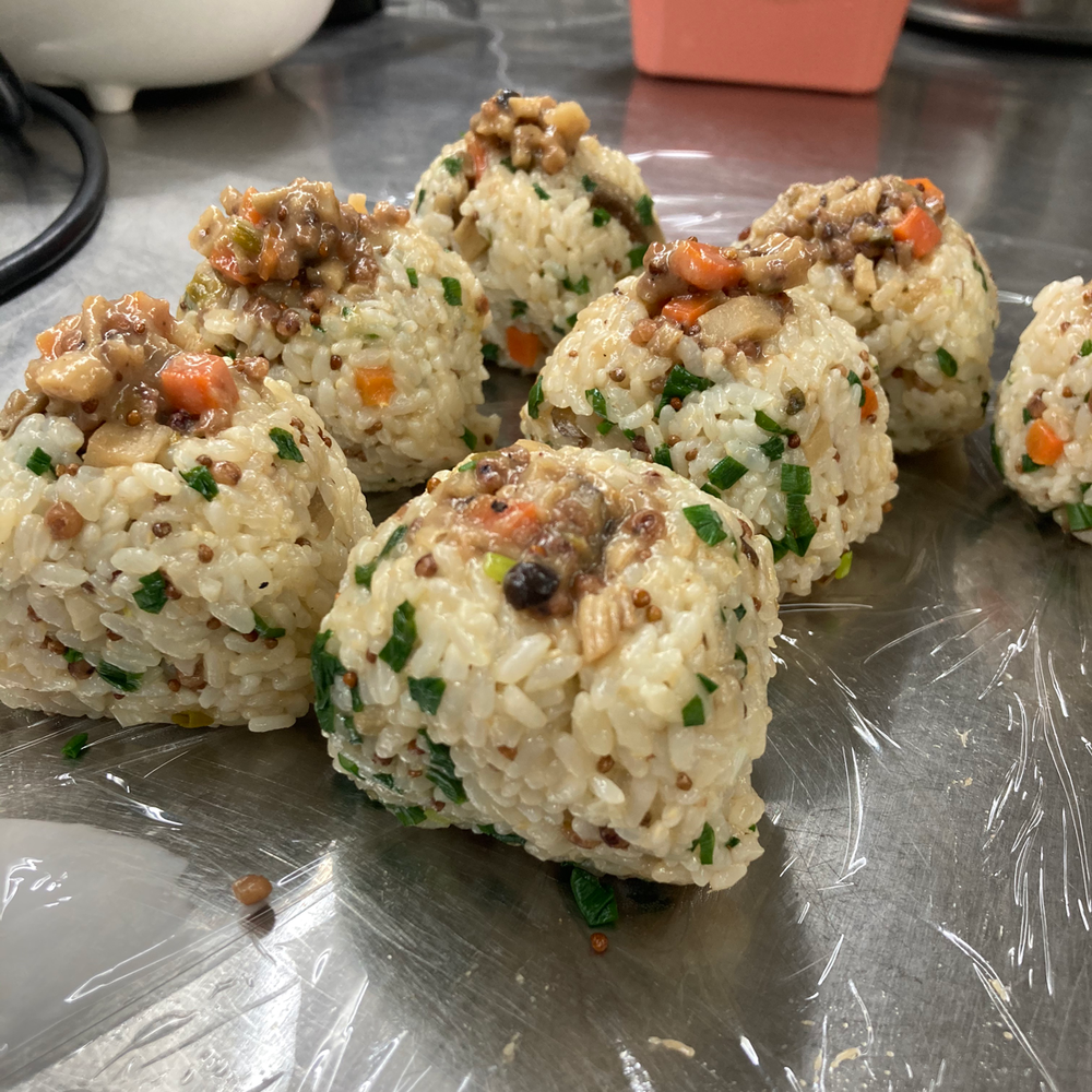 델리숍에서 만드는 미소 주먹밥은 통들깨 조금을 넣고 지은 흰 쌀밥을 압력솥으로 쫀쫀하게 지어 수수 채소 미소 볶음 된장과 들기름으로 밑간을 하고 잔파도 넣습니다. 밥알이 짓이겨 지지 않도록 살살 섞습니다. 밥의 모양을 잡고 위에 볶음 된장을 조금 더 올려 주먹밥을 완성합니다. 미소로 만들수 있는 파스타, 조림, 주먹밥, 양념 솥밥 등에 활용해보셔요.