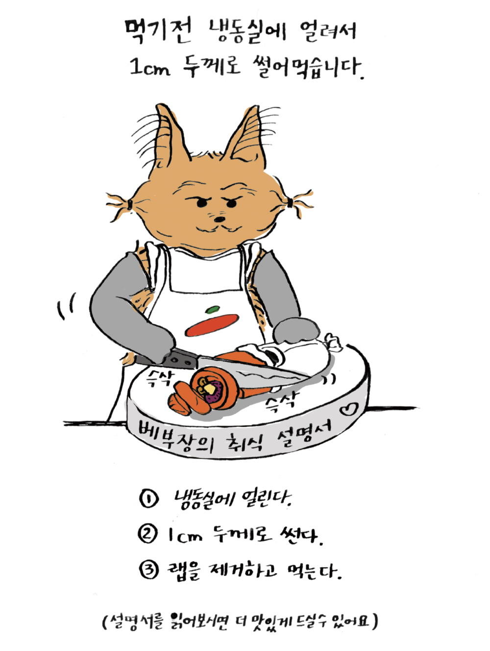 슈톨렌처럼 드실만큼만 잘라드시고, 냉동실에 밀봉 보관하실 것을 권하며, 1cm 이하의 간격으로 자르면, 1줄에 13~15피스 정도가 나옵니다. 선물세트 1박스에 4줄의 곶감말이가 들어가며, 종이 포장을 벗기고, 랩에 쌓인 상태로 잘드는 칼로 조심히 가급적 얇은 두께로 자릅니다. 자른 후, 반드시 비닐을 벗기고 드시고, 남은 곶감말이는 밀봉해 냉동 보관합니다. 썰어놓은 상태로 보관하시면, 곶감말이가 쉽게 마릅니다. 발효 식품으로 냉장, 냉동고에서 저장 기한이 넉넉하나, 시간이 지날수록 곶감의 겉면이 마르고 당분으로 하얗게 됩니다. 취식 상의 문제는 아니나, 가급적 빨리 드셔요. 해동이 되었어도 밀봉 후, 다시 냉동 보관하셔도 됩니다.